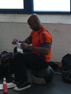I lurarna hade jag ett tabata-spår och planen vara att köra 4 reps/20 sek och sedan vila 10. Det gick faktiskt utöver förväntan (20 reps på 2:22 min), men sen fick jag problem med viktklämmorna på ena sidan och då kom jag av mig och tappade räkningen. Ville inte riskera en ”fail” så jag gjorde några extra. Slutade faktiskt med 34 reps på 5:07. Nöjd, sub 4 är helt klart inom räckhåll, även om push-jerken till största delen lyste med sin frånvaro. Men det här med 80% klockrena och 20% halvdassiga (pratade om att runt där kan man sikta om man ska få ut maximal intensitet) kanske inte gäller när det är ”anyhow”? Jag menar, jag tyckte inte jag gjorde mer än en-två tveksamma reps, men jag blandade PP och PJ hej vilt. Hur som helst kändes det bra, träningsvärken glömdes bort så fort jag började med första repetitionen.