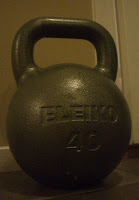 Och så har jag fått mina smutsiga händer på den här begagnade saken. Jäklar vilken klump! Ni storisar tycker såklart 40kg är litet och ynkligt, och att vad är en sån mot en 48kgs, men för oss 75kilosar känns den nästan hotfull. Ska bli kul att lära känna den närmare när jag frisknar till. Tills dess får den stå och blänga på mig!