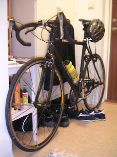 Blev inget löpande så jag tog i lite mer på cyklingen (fick skjuts in igår och ut i morse). Ingen motvind och rastlöshet slutade med en medelhastighet av nästan 34 km/h i 22 km! Ska väl tillägga att jag gjorde det utan ryggsäck och det var säkert gynnsamt. Ska kanske köpa den där väskan trots allt…