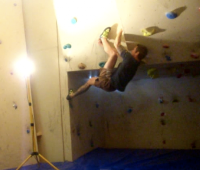 Satte sen den röda svårare leden i hörnet (som inte Jocke klarat 😉 igen och fick också till en till led jag inte satt förut, och lekte lite med en annan överhängsled som Jocke jobbat på några gånger och satte idag (grattis Jocke!). All in all riktigt bra dag.