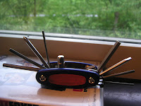 En snabb tur in för att hinna med en rea i en cykelaffär. Tyvärr visade det sig att det var utplockat eller så var det bara en lockrea. Inga inköp även om jag blev assugen på en transportväska som man kunde fästa under sadeln (för att slippa cykla med ryggsäck hela tiden). Det skulle få plats med två matlådor och hålla för 5 kg, men den kostade 780 kr. Cykelprylar är asdyrt! Hittade iaf ett praktiskt verktyg för 75 spänn.