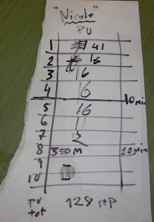 Den stapplande ”löpningen” gjorde faktiskt att jag hann vila upp armarna på varv 3-5, vilket syns på det jämna antalet reps, sedan lossnade det lite och repetitionerna rasade igen. Hann nästan springa åttonde varvet, hade jag gjort det så hade jag slagit min senaste ”Viking Nicole” på samtliga punkter vilket var förvånande med tanke på hur jag kände mig efter första varvet. På rodden kan man bara glida vidare, löpning är mer pannbensbeprövande för mig.