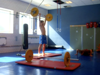 Max antal varv på 20 minuter av 15 Pushups, 12 Ring dips, 9 Pushpresses (52.5kg): 4 ronder+15PU+12RD+2PP. Lite dåligt paceat på slutet, hade jag fattat vad klockan var hade jag nog avslutat 5e ronden också. Klart värre än jag trodde, men det är klart – med tre olika typer av pressar efter varandra – man blir ju trött i pressmusklerna…